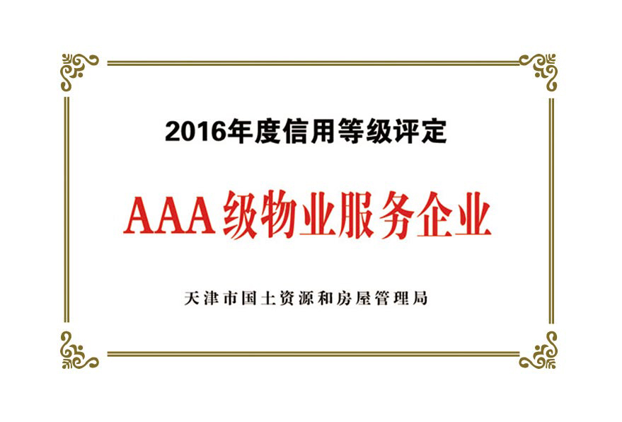 榮譽資質:天津市首批AAA級物業企業